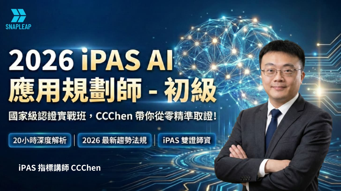 精選課程 立即上課 AI NEXT 14|AI 效率革命:六小時極速養成數位高手實戰指南 by 林世駿 Sergius NT$6,000 6 小時 5 分 6 精選課程 AI NEXT 03|AI 跨界:領袖表達力訓練營 NT$10,000 12 小時 0 分 熱門課程 立即上課 【CCChen 帶你考 iPAS 證照】2026 iPAS AI 應用規劃師-初級 by 陳正健 CCChen NT$6,800 原始價格:NT$6,800。NT$3,999目前價格:NT$3,999。 8 小時 40 分 9
