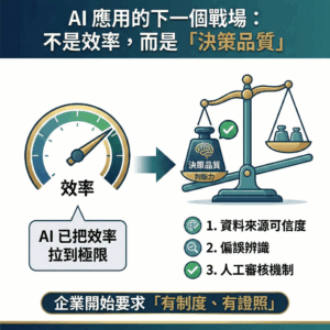 首頁 知識相關 AI 工具一直變,為什麼「AI 應用能力」反而越來越重要? AI 工具一直變,為什麼「AI 應用能力」反而越來越重要?service@snapleap.app知識相關 立即預約 工具每年都在換 今天 ChatGPT,明天是別的模型。 但不變的是三件事 工作流程 決策邏輯 風險控管 證照不是追工具,而是學「判斷力」 iPAS 不考你會用哪一個工具,而是: 為什麼這裡適合用 AI 什麼情況不該用 用錯會造成什麼後果 service@snapleap.app 上一 文章 AI 應用的下一個戰場:不是效率,而是「決策品質」 下一 文章 為什麼企業導入 AI,80% 卡在「不知道從哪一段流程開始」?